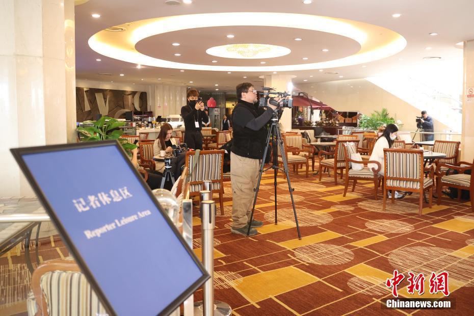 2月27日,在2024年全国两会即将召开之际,位于北京梅地亚中心的全国两会新闻中心正式启用。图为香港媒体记者在新闻中心采访拍摄。