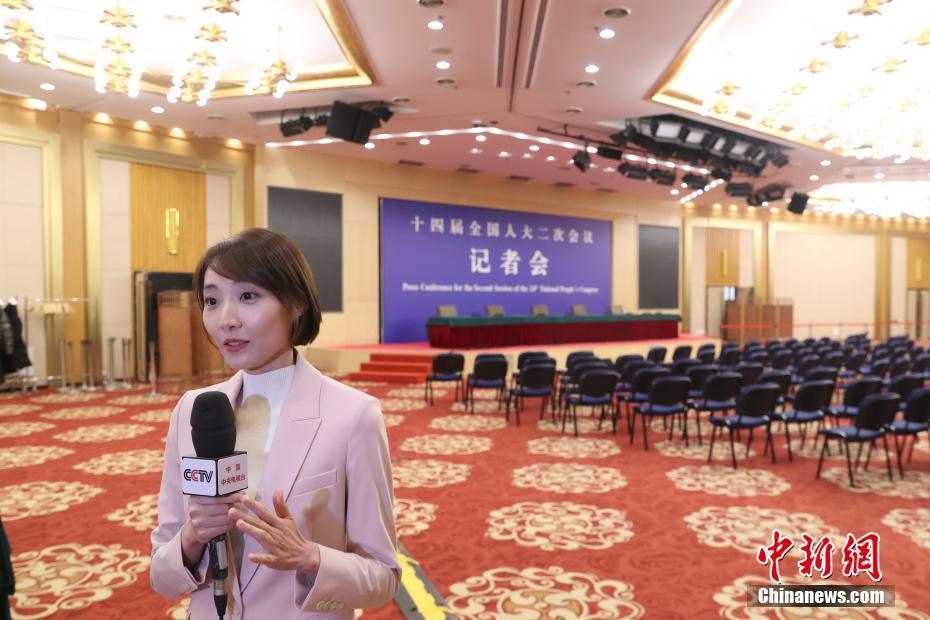 2月27日,在2024年全国两会即将召开之际,位于北京梅地亚中心的全国两会新闻中心正式启用。图为媒体记者在全国两会新闻中心出镜采访。