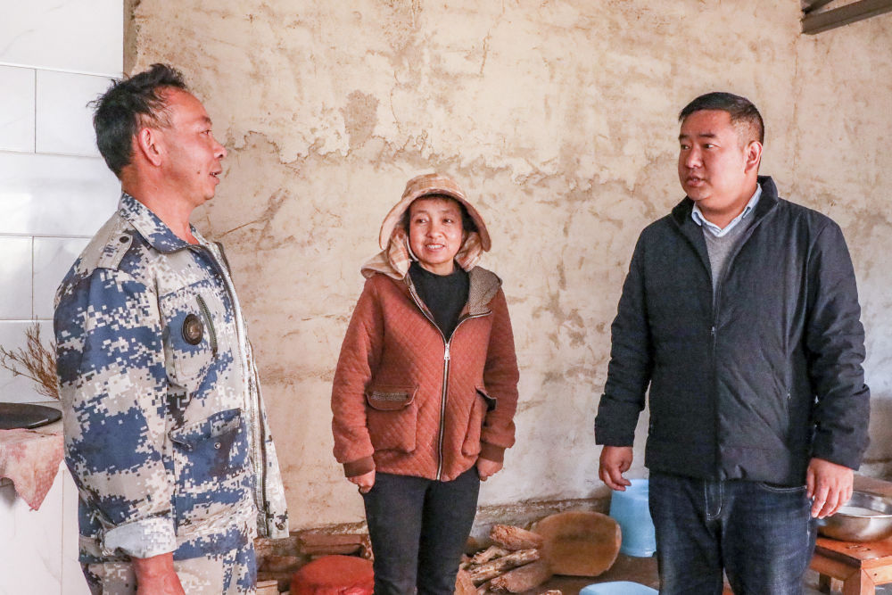 在云南省澄江市海口镇新村,郭进(右一)在群众家调研了解情况(2月26日摄)。