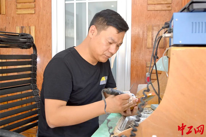叶建辉对雕刻感兴趣,源于每天上学路上路过弋阳工艺雕刻厂。“看里面的师傅刨木头,刨着刨着就出了人形、花形。”这让他感到新鲜又新奇,心里萌发了求学的念头。
