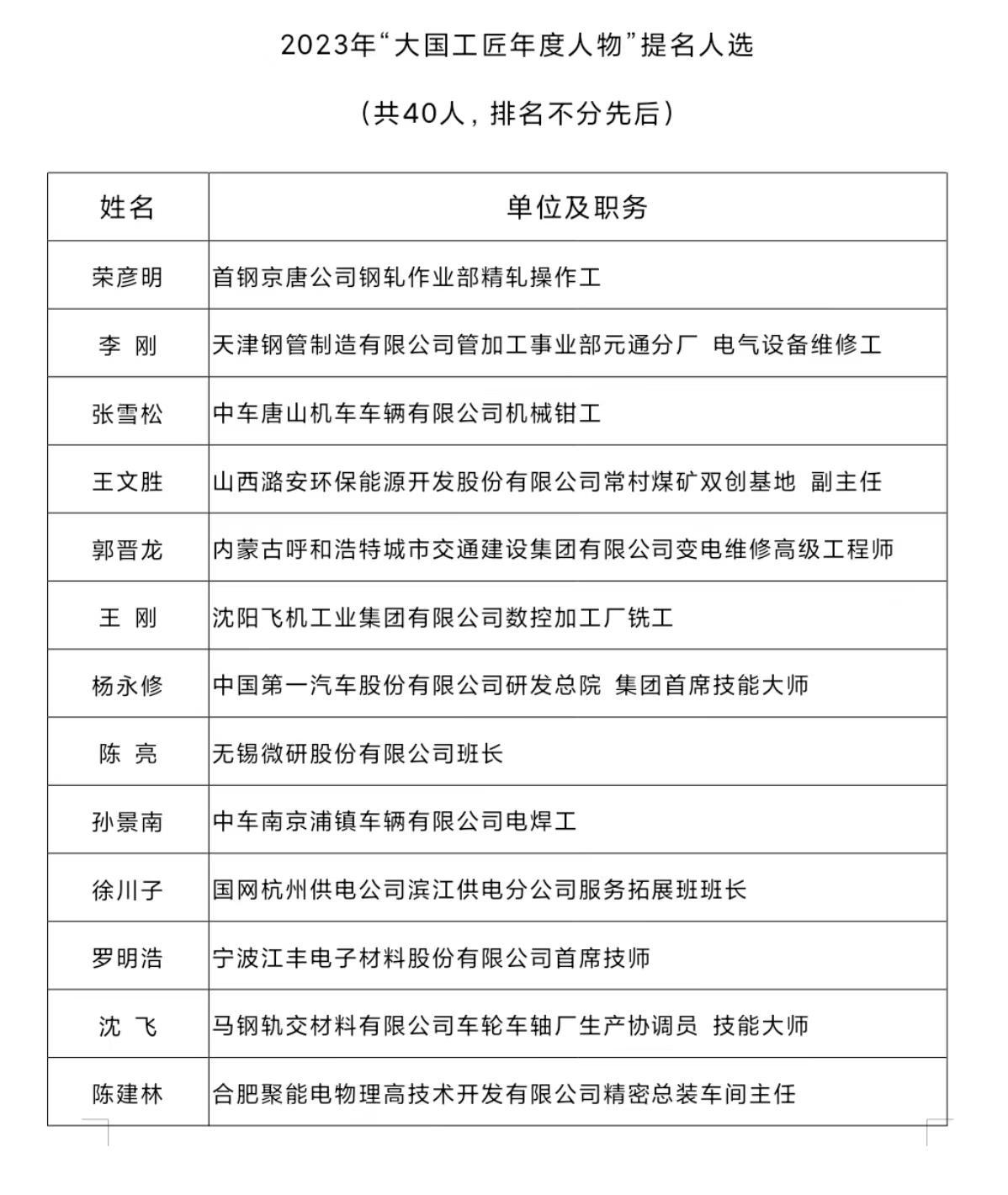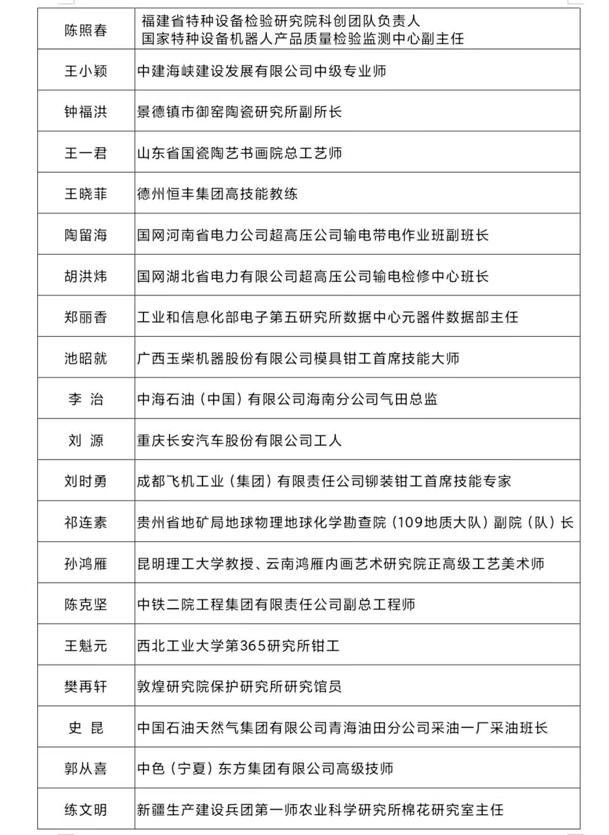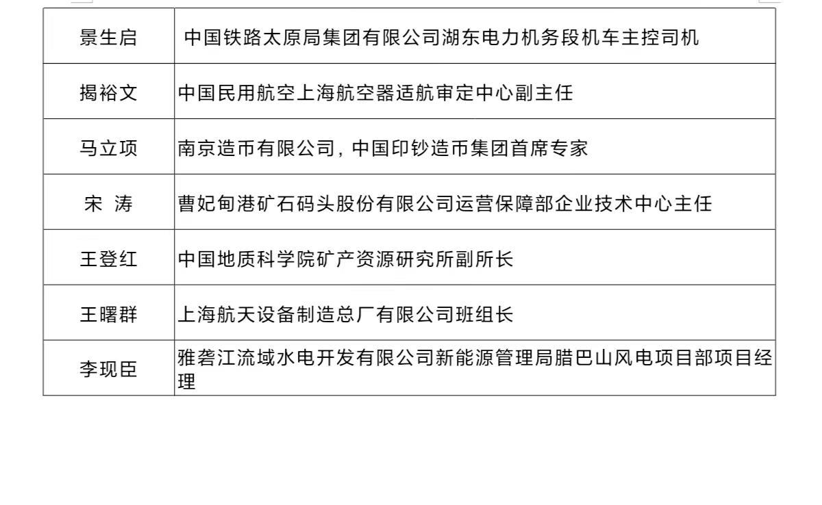 十位“大国工匠年度人物”分别是: