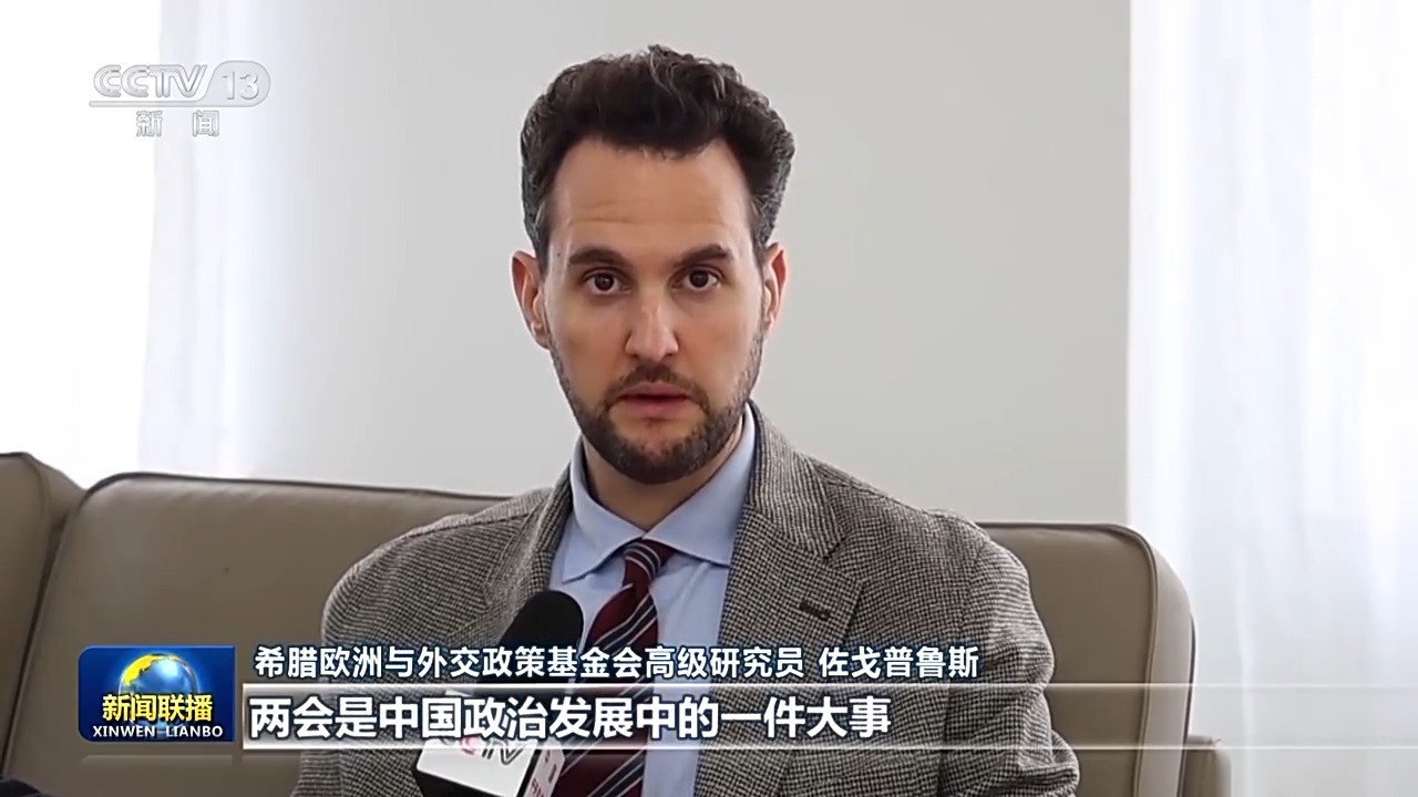 希腊欧洲与外交政策基金会高级研究员 佐戈普鲁斯:两会是中国政治发展中的一件大事,涉及多领域重要议题。我非常关注中国科技创新如何推动现代化建设,推动经济高质量发展。因为中国发展越好,世界就越好。我们期待中国在经济、科技等领域的发展,为世界注入新活力。