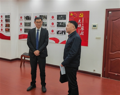 图为全国人大代表袁建(左)参观分宜法院荣誉室。潘小龙 摄