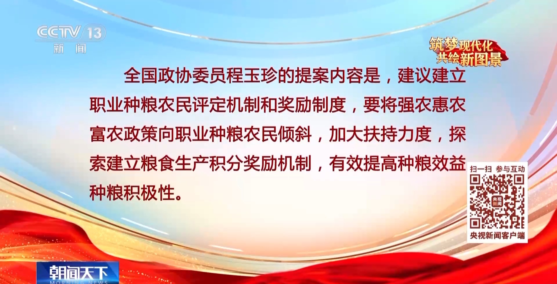 今年,程玉珍委员的提案内容是,建议建立职业种粮农民评定机制和奖励制度,要将强农惠农富农政策向职业种粮农民倾斜,加大扶持力度,探索建立粮食生产积分奖励机制,有效提高种粮效益、种粮积极性。