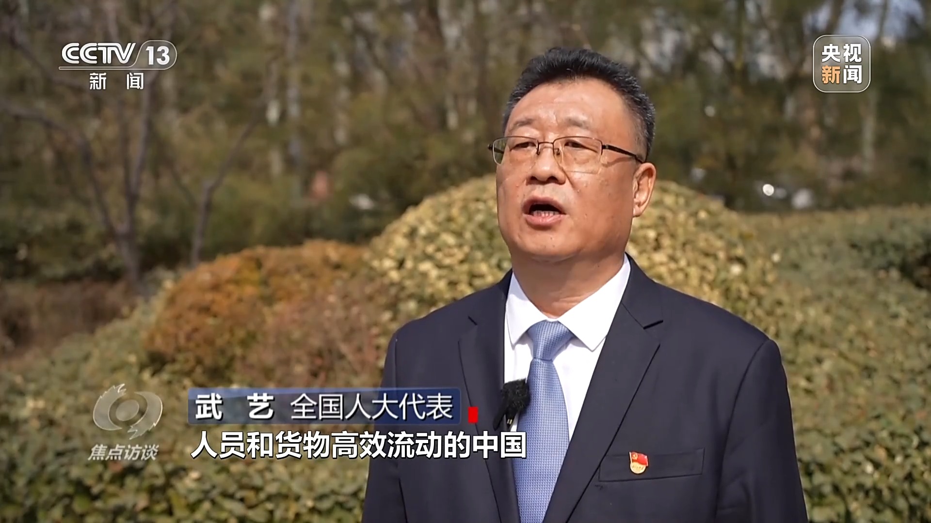 全国人大代表 武艺:“着力提升‘人享其行、物畅其流’,这也是我们去年的工作重点。过去的一年,人员和货物高效流动的中国充满了生机和活力,以山西为例,我们加强智慧交通建设,有效提升了通行效率和服务水平。”