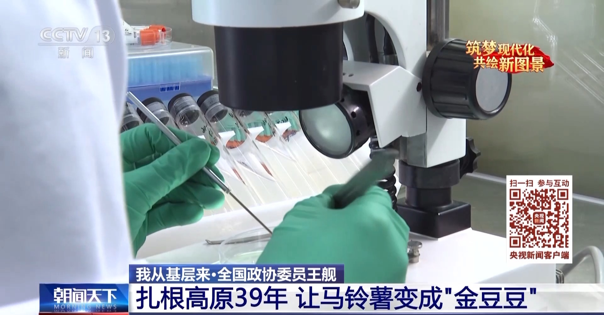 全国政协委员 王舰:我们最关注的是老百姓需要什么样的品种,来提高产量,增加收入。马铃薯是无性繁殖作物,自然生长条件下它会受到各种病害的侵染,而引起产量逐渐下降。