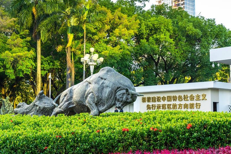 如今,深圳市委大院门口的孺子牛依旧矗立,它所站立的土地早已日新月异。雕塑旁的墙壁上,“朝着建设中国特色社会主义先行示范区的方向前行”的大字熠熠生辉。