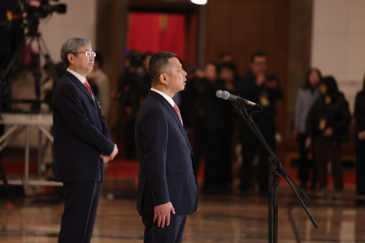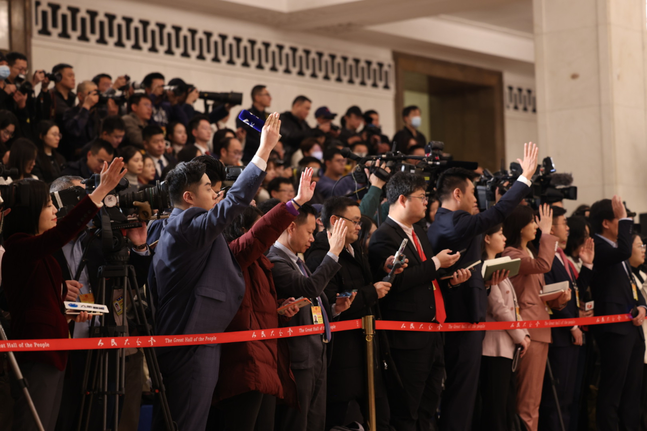 3月5日,十四届全国人大二次会议首场“代表通道”集中采访活动在北京人民大会堂举行。