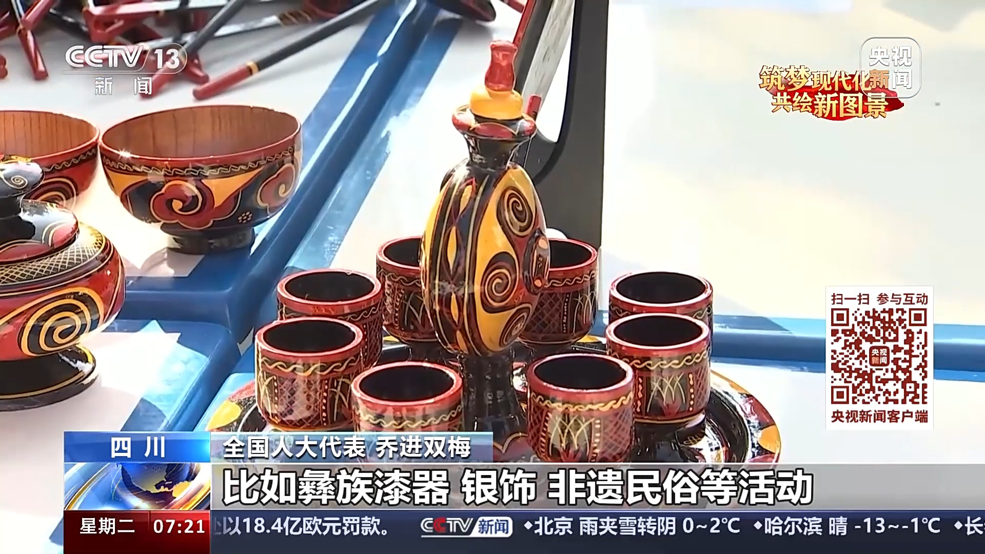 全国人大代表 乔进双梅:(今年)我准备的建议是,进一步挖掘、提炼、开发彝区的优秀文化、特色产业,比如彝族漆器、银饰、非遗民俗等活动,加速带动大小凉山群众稳定就业增收。