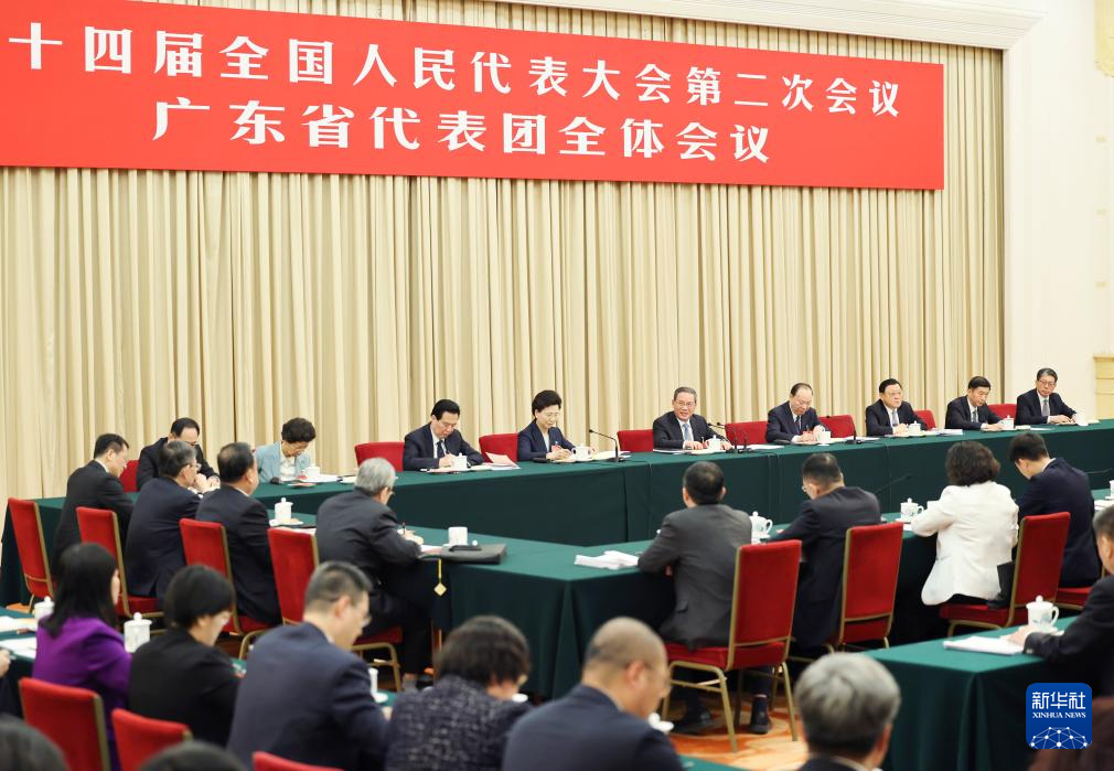 6日下午,李强参加了广东代表团审议。在认真听取郭永航、覃伟中、何小鹏等代表发言后,李强说,过去一年很不寻常,在以习近平同志为核心的党中央坚强领导下,我们有力有效应对各种困难挑战,圆满完成经济社会发展主要目标任务,全面建设社会主义现代化国家迈出坚实步伐。广东等经济大省勇挑大梁,为全国发展大局作出了重要贡献。希望广东深入贯彻习近平总书记关于广东工作的重要指示精神,强化使命担当,积极抢占新一轮科技革命和产业变革制高点,以更大决心和力度深化改革开放,着力促进城乡区域协调发展,不断增进民生福祉,推动高质量发展取得更大成效,努力在推进中国式现代化建设中走在前列。