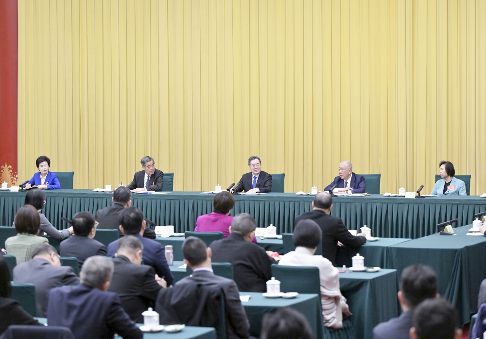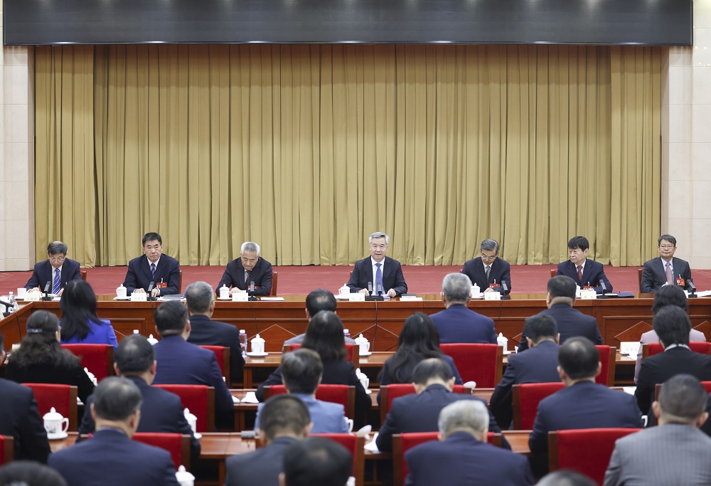 3月6日,中共中央政治局常委、全国政协主席王沪宁参加全国政协十四届二次会议少数民族界委员联组会。新华社记者 申宏 摄
