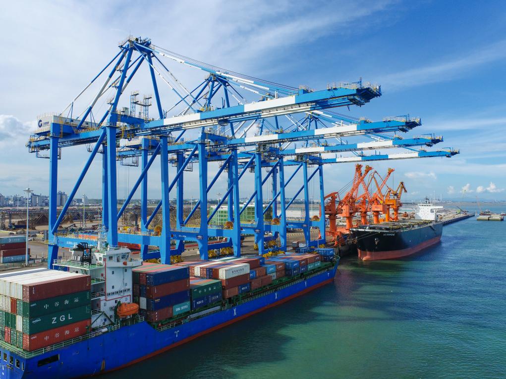 广西北海铁山港区集装箱船舶作业现场。新华社发(北港融媒体中心供图)