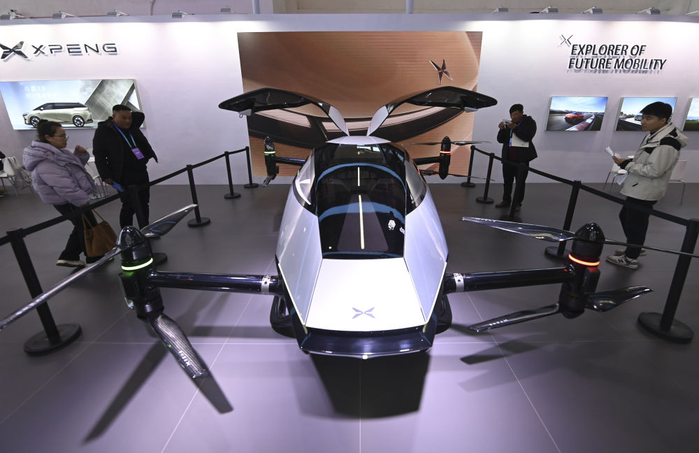 2023年12月1日,在链博会智能汽车链展区小鹏汽车展台,参观者观看一台智能飞行器。新华社记者蔡湘鑫摄