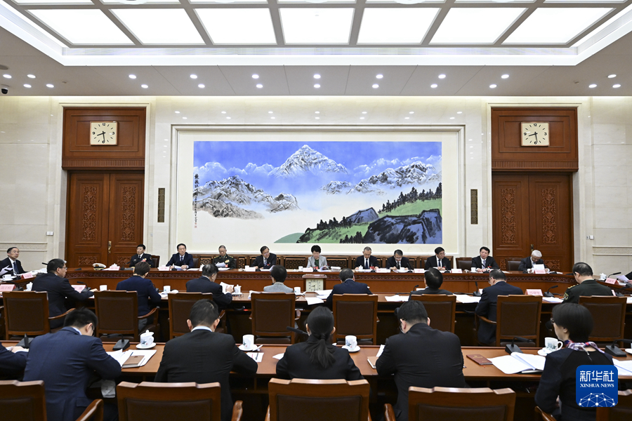 3月7日晚,第十四届全国人大宪法和法律委员会召开全体会议,根据各代表团的审议意见,对国务院组织法修订草案进行统一审议。新华社记者 牟宇 摄