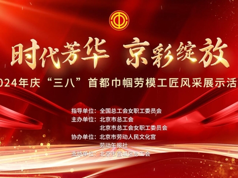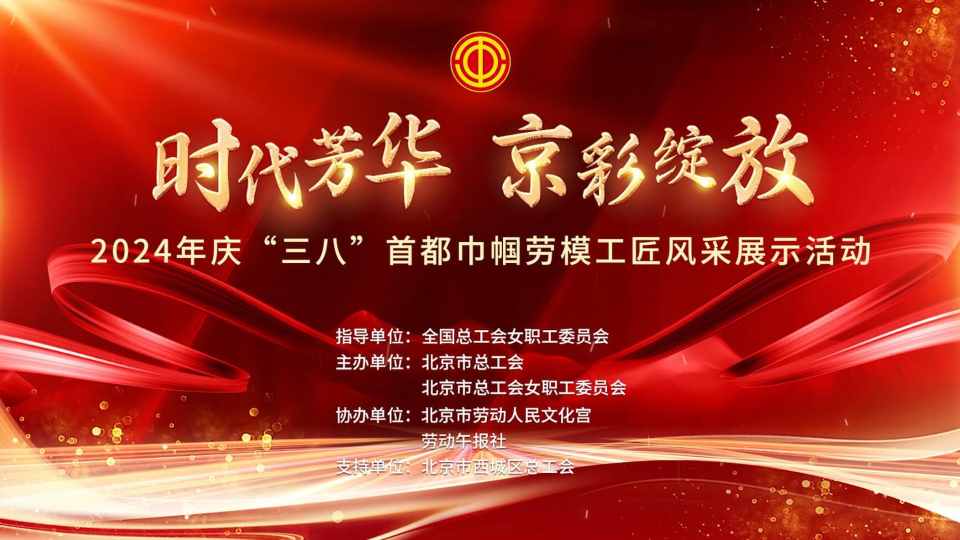 直播回顾丨“时代芳华 京彩绽放”——2024年庆“三八”首都巾帼劳模工匠风采展示活动 在第114个国际劳动妇女节来临之际,为认真落实中国工会十八大任务,大力弘扬劳模精神、劳动精神、工匠精神,由北京市总工会、北京市总工会女职工委员会主办的“时代芳华 京彩绽放”2024年庆“三八”首都巾帼劳模工匠风采展示活动于3月8日10:00开展,中工网首页同步直播。