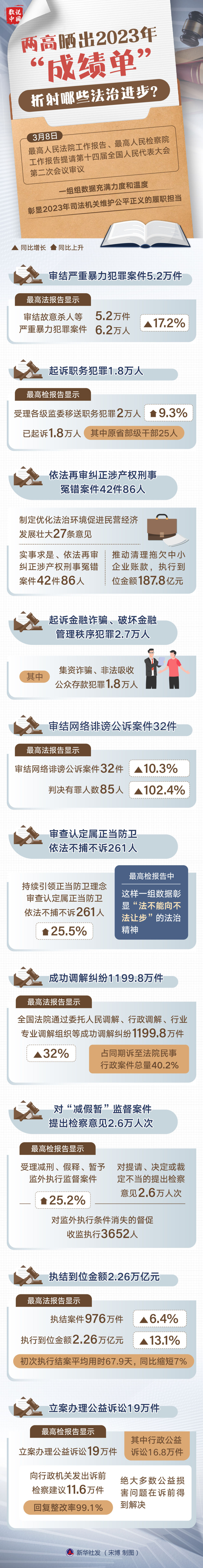 翻开两高报告,一组组数据充满力度和温度,彰显2023年司法机关维护公平正义的履职担当。
