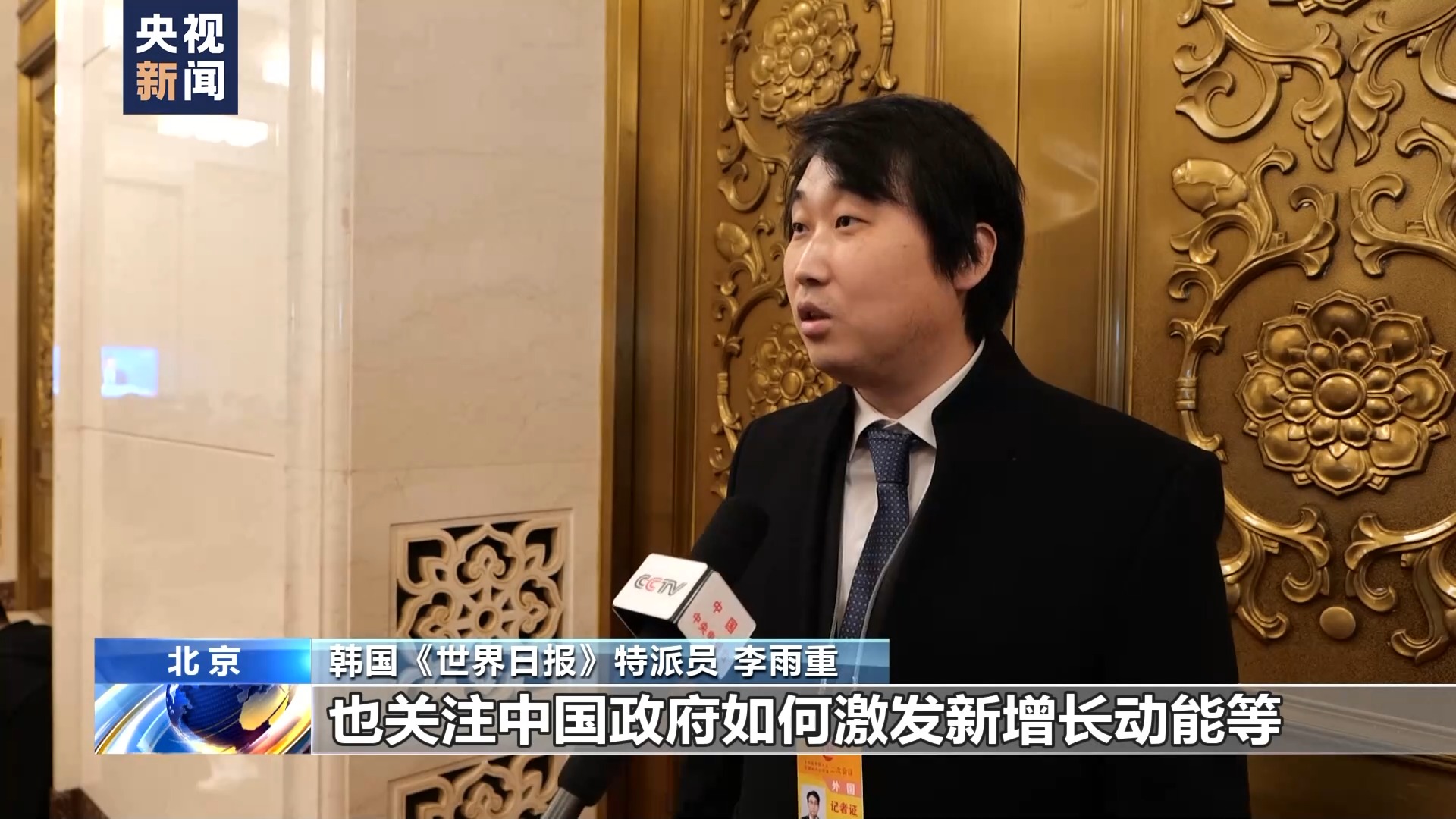 韩国《世界日报》特派员 李雨重:中国经济总量占世界经济的比重大,所以我们都比较关注。我比较关注新能源领域,中国新能源汽车和电池产业规模宏大,大家非常关注,也关注中国政府如何激发新增长动能等。希望韩中两国官员经常保持接触,开展更多的民间交流。