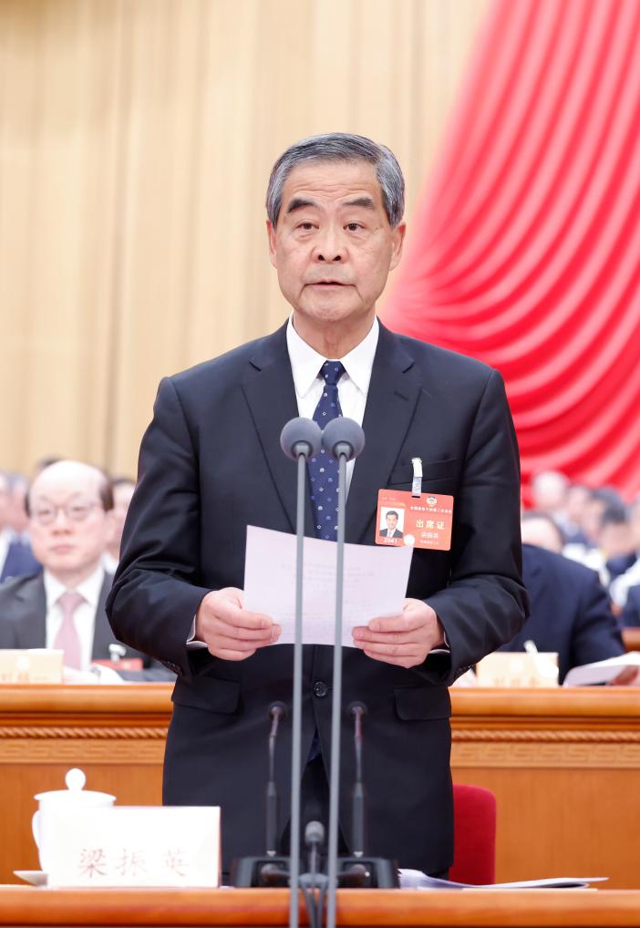 3月9日,全国政协十四届二次会议在北京人民大会堂举行第三次全体会议。梁振英主持会议。新华社记者 黄敬文 摄