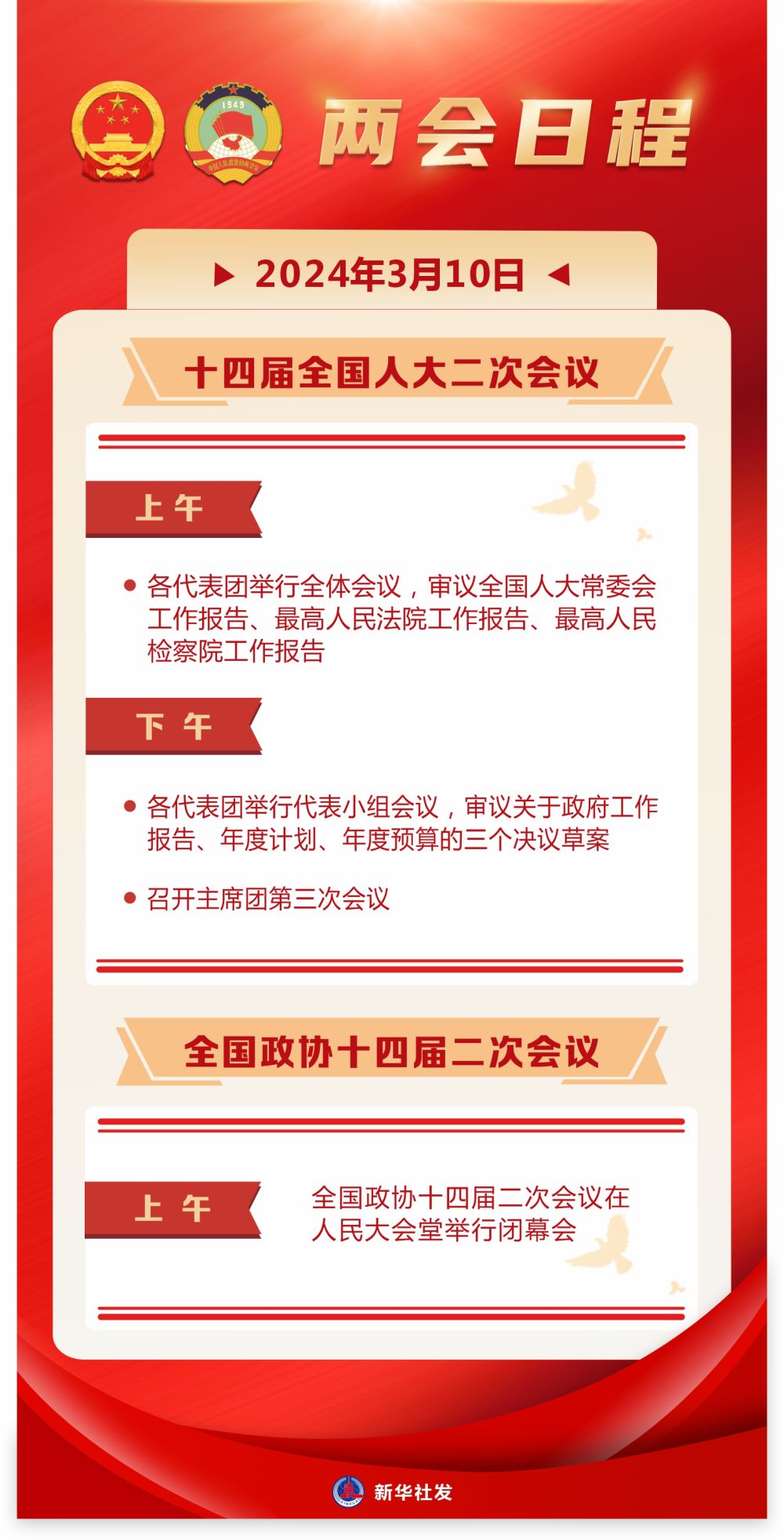 3月10日:人代会审议全国人大常委会工作报告等 全国政协十四届二次会议闭幕