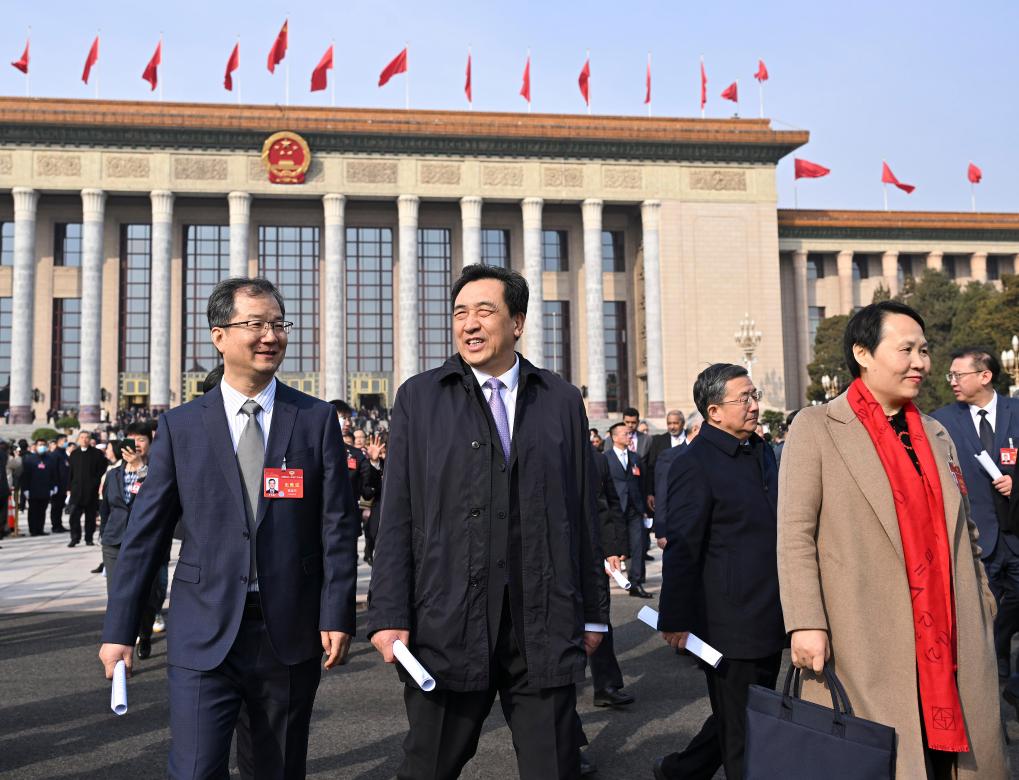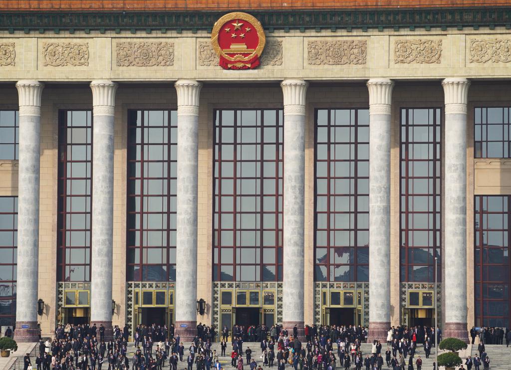 3月10日,中国人民政治协商会议第十四届全国委员会第二次会议在北京人民大会堂举行闭幕会。这是闭幕会后,委员们走出人民大会堂。