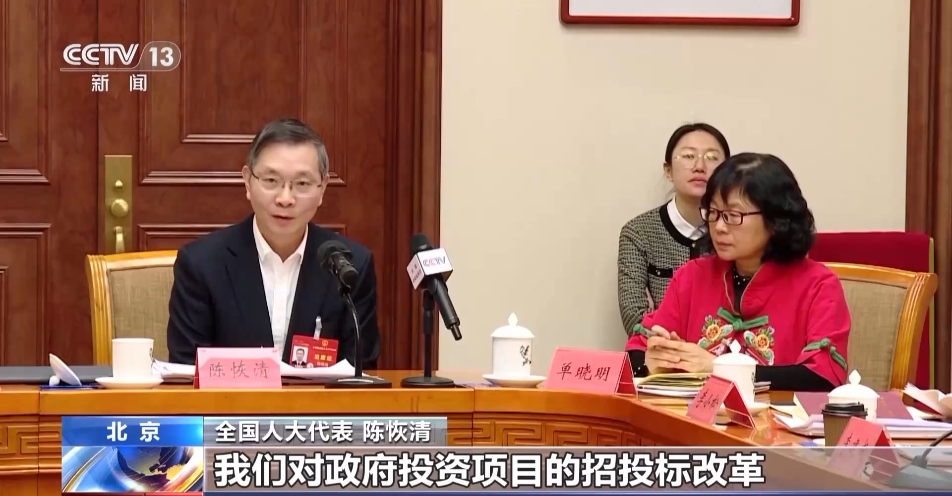 全国人大代表 陈恢清:我们对政府投资项目的招投标改革进行了大胆探索和创新,经过一年多实践,效果非常好,成本平均降低超过20%,实施了200多个项目,没有一个烂尾工程。我们欢迎全国人大在立法的过程中,到我们这些地方去调研,总结探讨。
