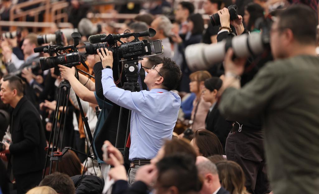 3月11日,第十四届全国人民代表大会第二次会议在北京人民大会堂举行闭幕会。这是记者在闭幕会上采访。