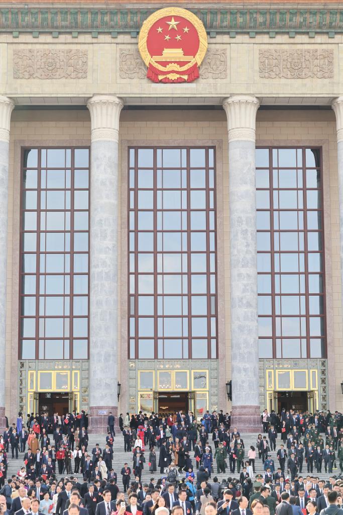 3月11日,第十四届全国人民代表大会第二次会议在北京人民大会堂举行闭幕会。这是闭幕会后,代表们走出人民大会堂。