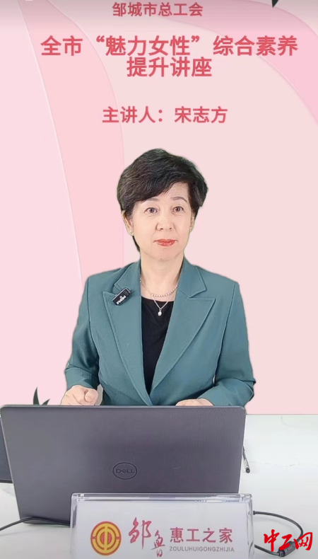 日前,邹城市总工会举办“魅力女性”综合素养提升讲座。图为直播现场照片。邹城市总工会供图
