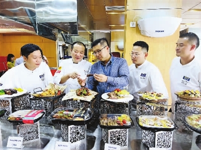 他向记者讲起一个研发故事,一年冬天,他和团队研制了一款马来西亚名菜肉骨茶预制菜,但在规模生产中,如何去除汤体表面漂浮的油脂成了难题。眼看上市的日子越来越近,陈海亮住到了工厂里开展攻关,“有天研究到半夜,我们几个厨师坐在一起吃火锅,大家心里装着难题都不说话,索性关了火。”看着火锅里的红油迅速凝固,陈海亮突然想到了办法,团队通过快速冷凝与二次加热解决了生产中的技术难关,用中餐的思维解决了西餐的问题。