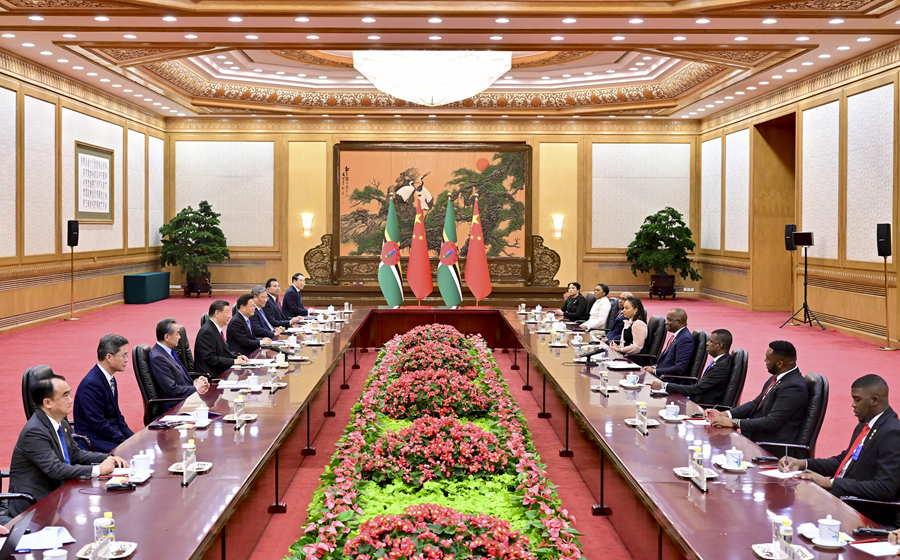 习近平强调,中方倡导平等有序的世界多极化和普惠包容的经济全球化,主张国家不分大小、强弱,都是国际社会的平等成员。中方重视小岛屿发展中国家在气候变化领域的关切和诉求,支持多米尼克在国际和地区事务中发挥积极作用,愿同多方加强协调配合,深化南南合作,维护发展中国家共同利益,推动构建人类命运共同体。中方高度重视同加勒比国家关系,赞赏多方担任加勒比共同体轮值主席期间为推动中加合作发挥重要作用,愿继续支持加勒比地区国家谋求国家繁荣发展、增进民众福祉。