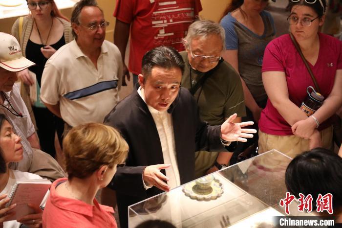 2019年6月,柏群在美国华盛顿的一家博物馆向观众介绍金漆镶嵌技艺。 (受访者供图)