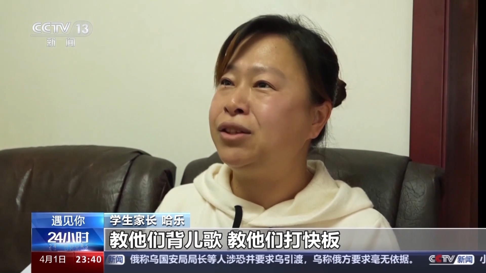 学生家长 哈乐:(上学前)说话说只有母亲能听懂,别人谁也听不清。李老师从语言方面教他们背唐诗,教他们背儿歌,教他们打快板。就是四页的快板,每一页都能有20多句话,说得呱呱的,非常非常好!