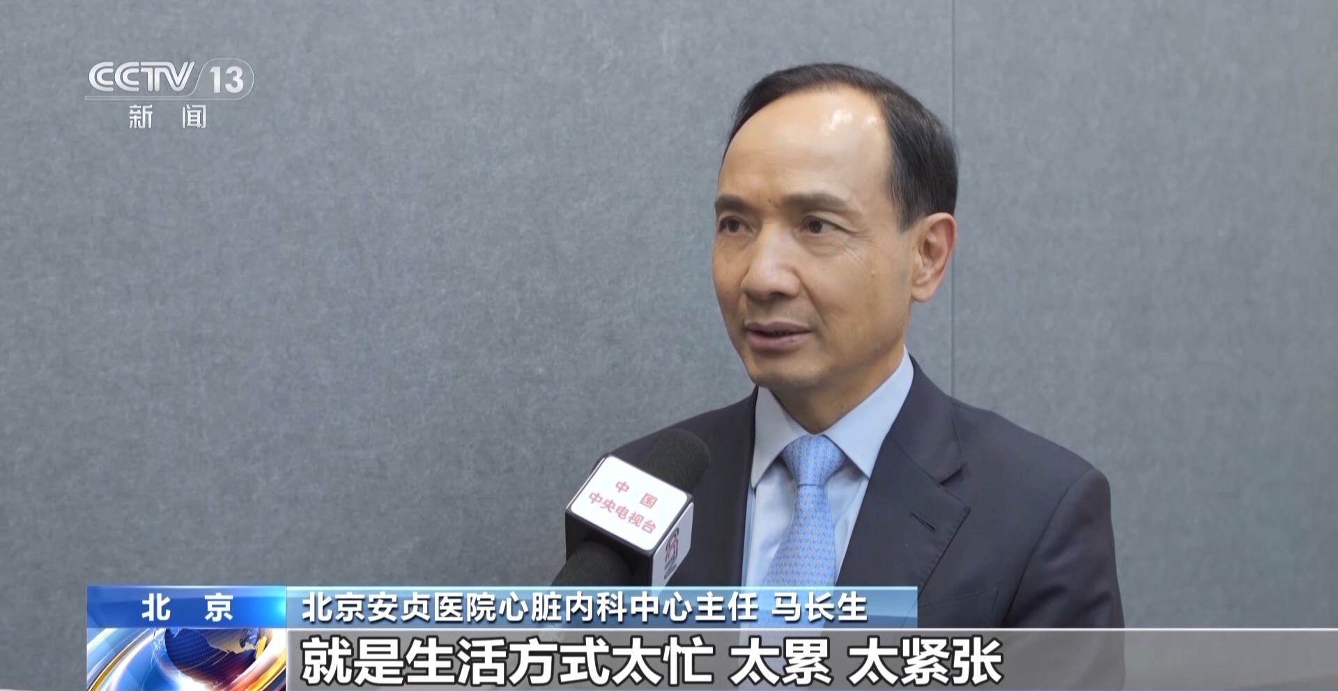 北京安贞医院心脏内科中心主任 马长生:我们青年患慢性病的主要原因就是生活方式太忙太累太紧张,没有足够的时间,快餐简单吃,时间不够。这就是我们国家中青年糖心肾,就是高血压病,冠心病、糖尿病、肾脏病增加的原因,它的危害当然是巨大的,所以糖心肾我们三个专科一块,还有一个高血压跟高血脂、高血糖、三高共管,对于我们的中青年减少糖心肾疾病就更加重要。