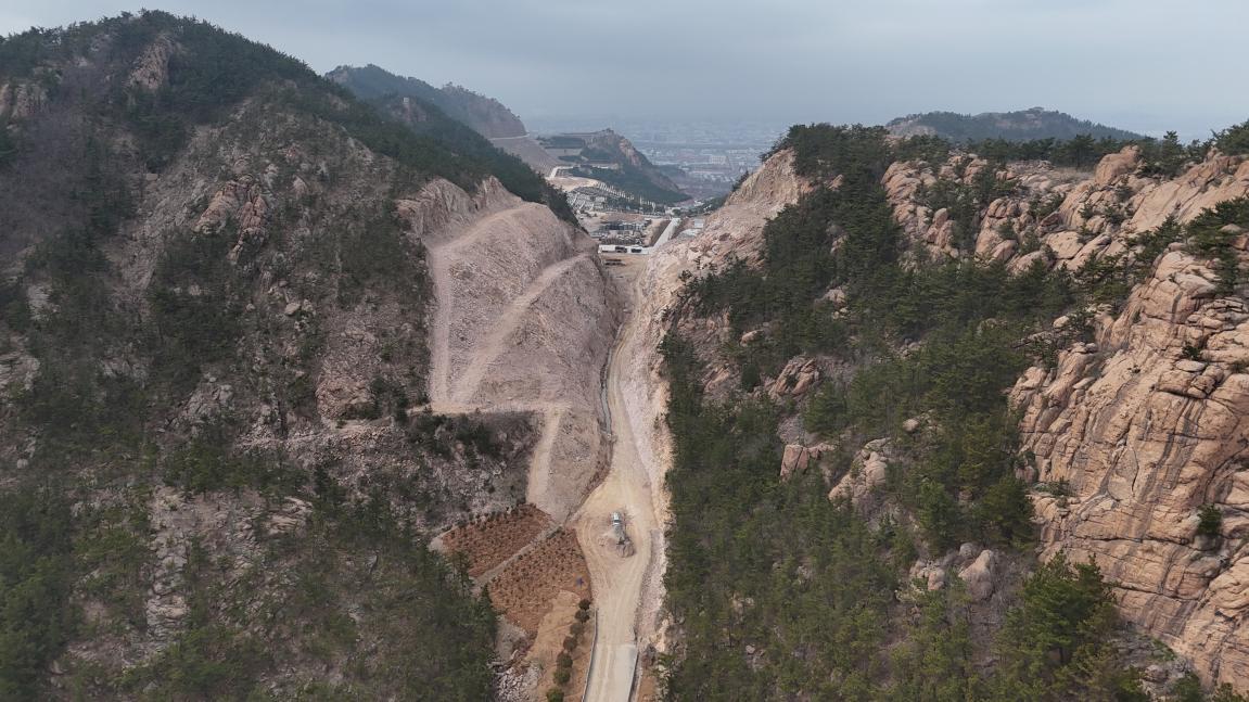 在村民的指引下,中国之声记者绕行数公里,从崂山水库附近的村庄穿过杂草乱石,爬山到达了太平陵公墓向东行进修筑的道路。记者看到,路面已经硬化,两侧的山体有的已被挖过,开辟成了新的平整地块,道路一侧还有成片被砍伐的林木。随行村民告诉记者,这条路是挖开两侧山体修的。