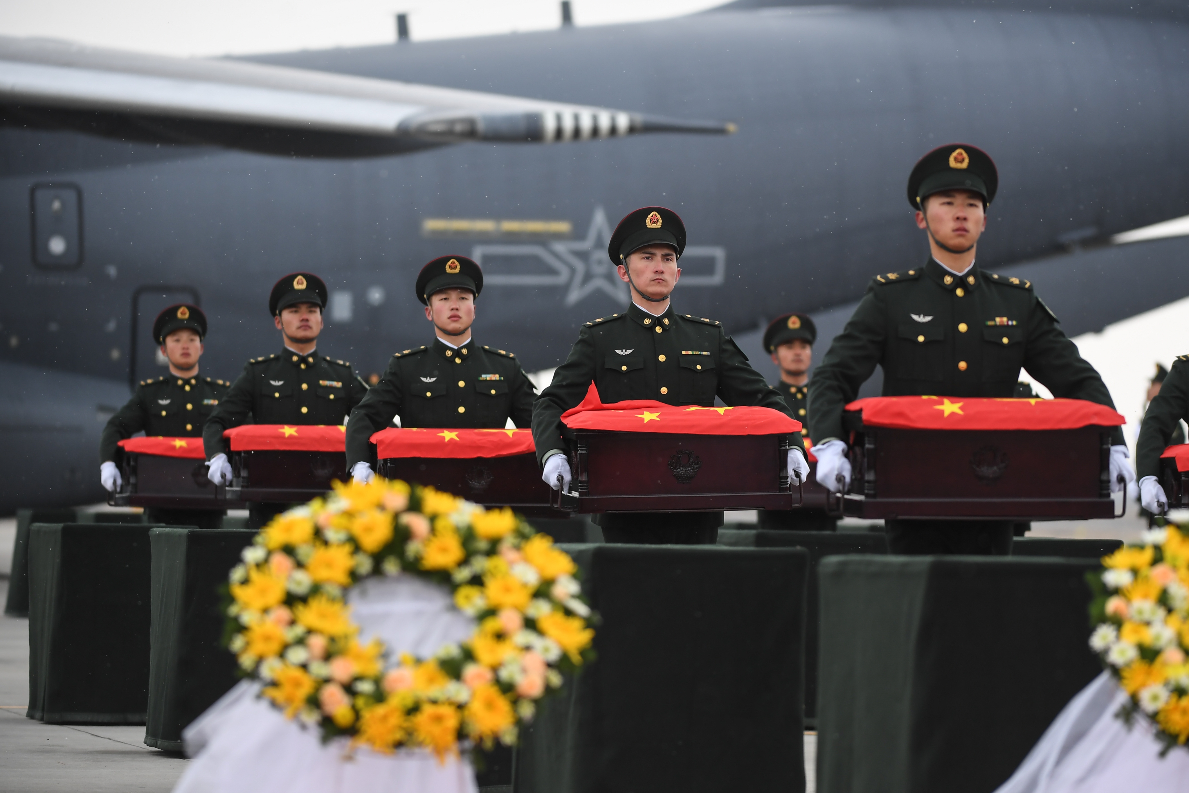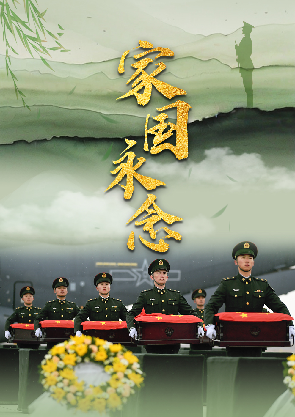 “天地英雄气,千秋尚凛然,我们以崇高敬意欢迎志愿军忠烈回家。”