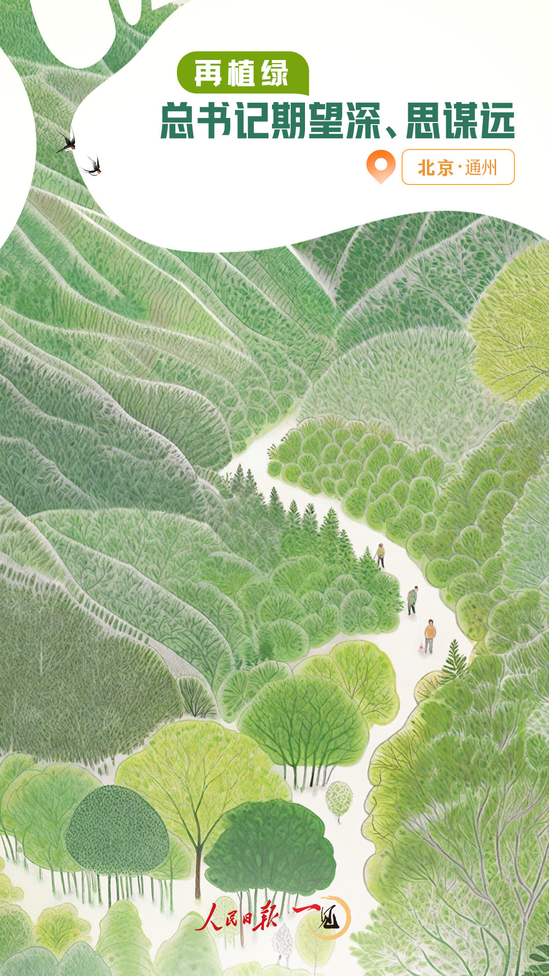 时间在延续,空间在铺展,绿色发展的思路一以贯之,绿色发展的蓝图渐成现实。这次义务植树期间,总书记再次要求:“积极参与植树造林,人人争当绿色使者、生态先锋,为建设美丽中国增绿添彩,共同谱写人与自然和谐共生的中国式现代化新篇章。”