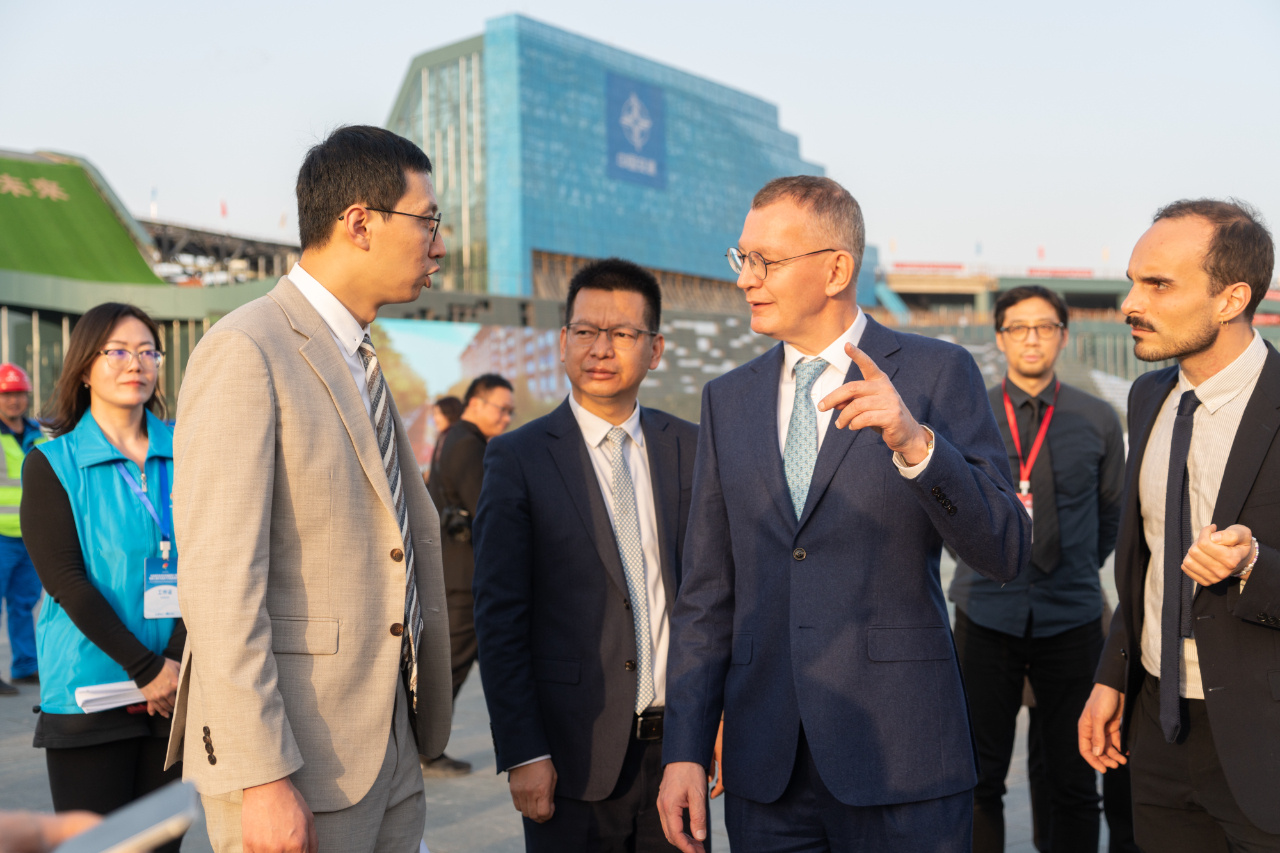 “文体中心,太壮观了!”法国驻汉副总领事罗冉,赞叹知音故里中法武汉生态城文体中心,可谓“高山流水遇知音”。2024年是中法建交60周年,3月20日,中法生态城签约十周年暨第七届中法城市可持续发展论坛在蔡甸区举行。开幕式后,罗冉等参观团考察中交城投投资、中交二航局承建的中法武汉生态示范城文体中心项目。