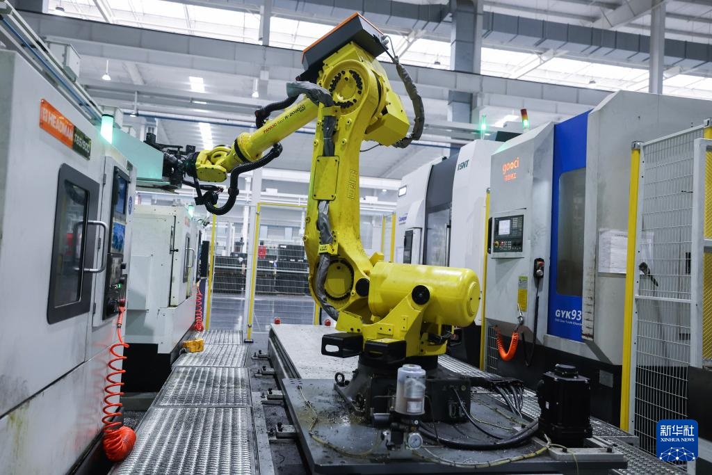4月8日,在绍兴柯桥的浙江金道科技股份有限公司智能化车间内,自动化设备在生产变速箱配件。新华社记者 徐昱 摄
