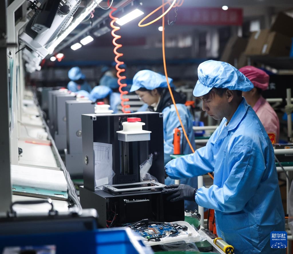 4月8日,在绍兴柯桥的浙江迅实科技有限公司生产车间内,工作人员在组装3D打印机。新华社记者 徐昱 摄