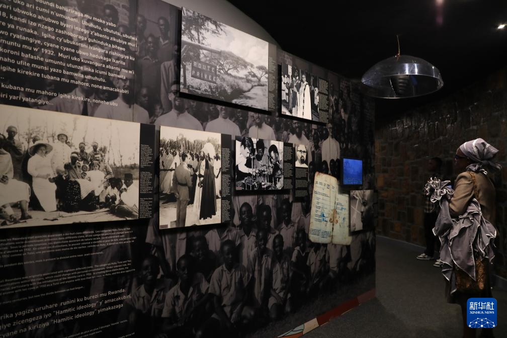 4月8日,在卢旺达首都基加利,一名女子在基加利大屠杀纪念馆展厅参观。