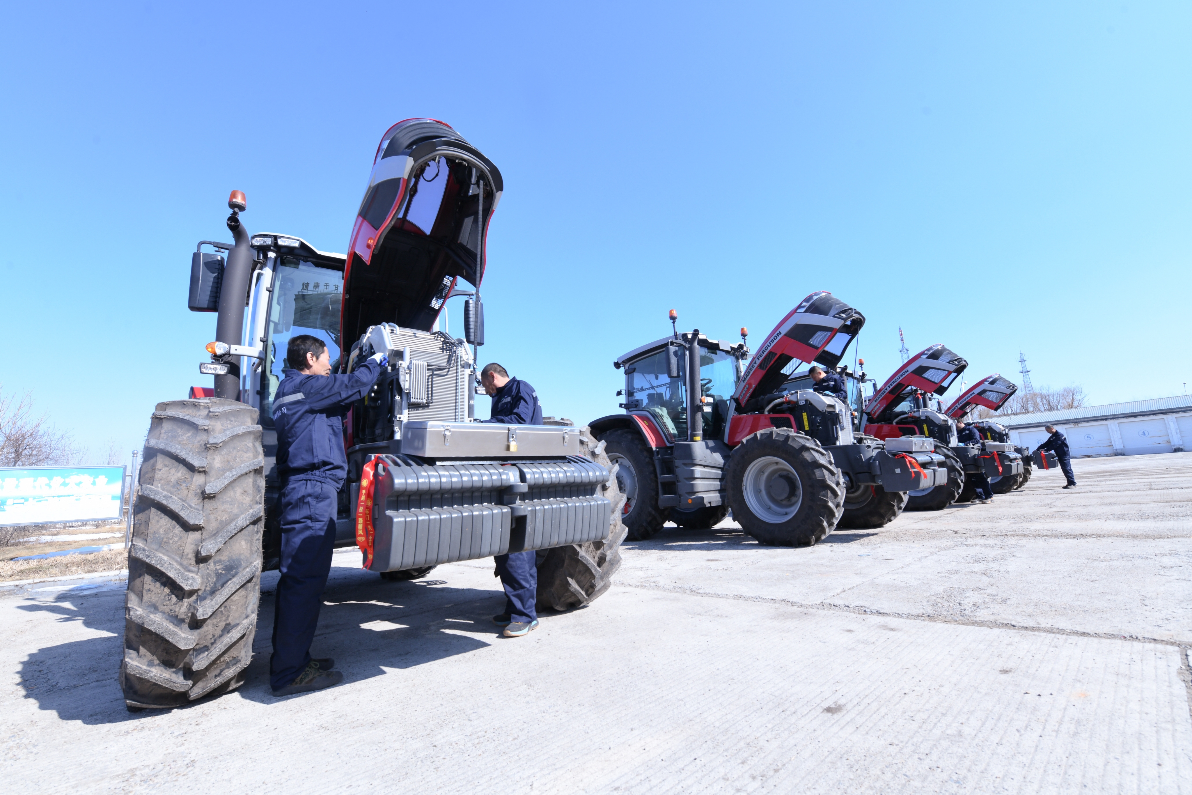 2024年3月22日,在北大荒集团建设农场有限公司,农机手对新引进的拖拉机进行调试。新华社记者 王松 摄