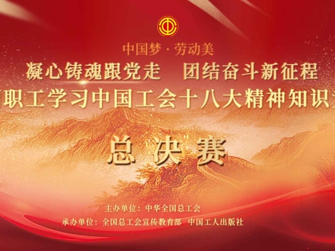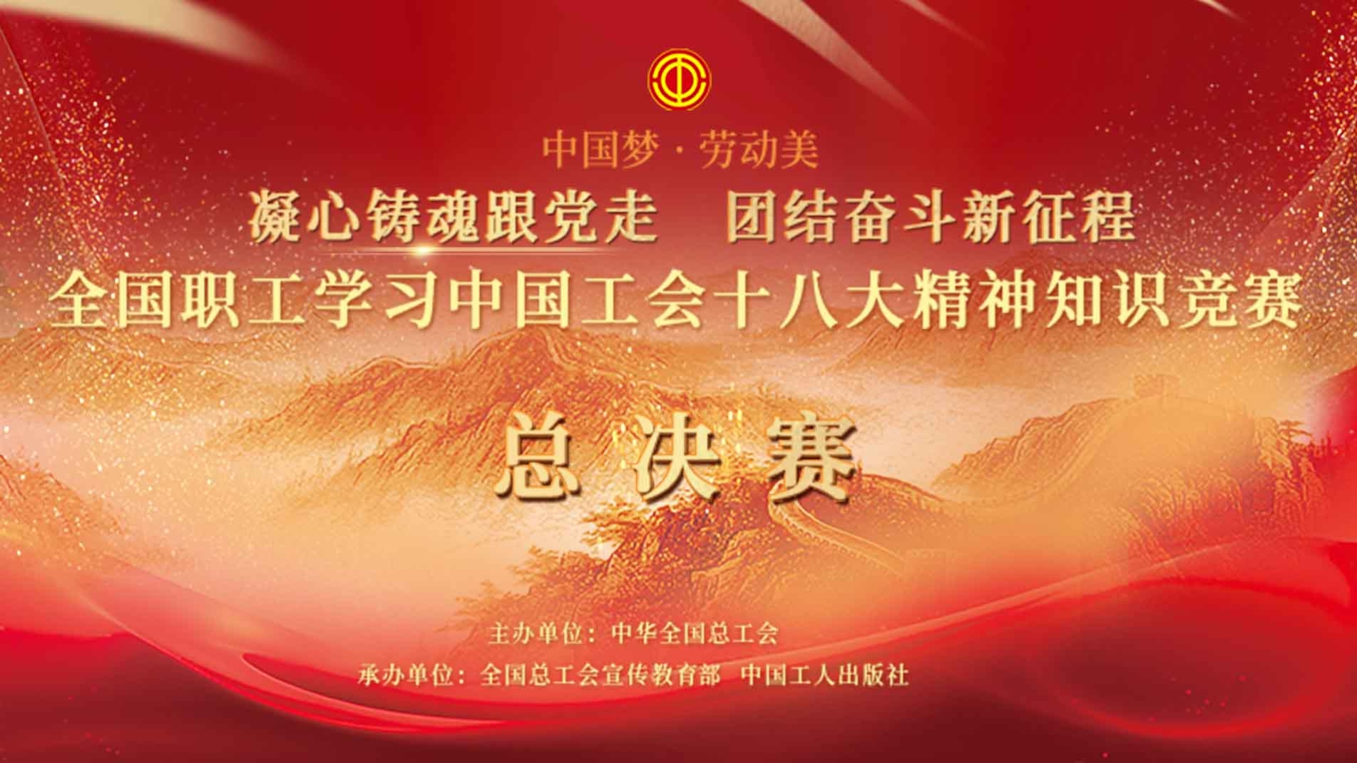 直播回顾丨“中国梦·劳动美——凝心铸魂跟党走 团结奋斗新征程”全国职工学习中国工会十八大精神知识竞赛总决赛 自1月4日开展“中国梦·劳动美——凝心铸魂跟党走 团结奋斗新征程”全国职工学习中国工会十八大精神知识竞赛以来,各级工会组织广大职工积极参加,28天线上初赛的参与人次达到3828万。4月2日,决赛在全总机关以视频连线+线上同步答题的方式进行,12支代表队进入总决赛。作为贯彻落实全总“559”工作部署,加强职工思想政治引领的重要举措,总决赛于4月22日上午在云南省昆明市以线下方式举行。4月22日9:30,中工网首页、微博、视频号同步直播。