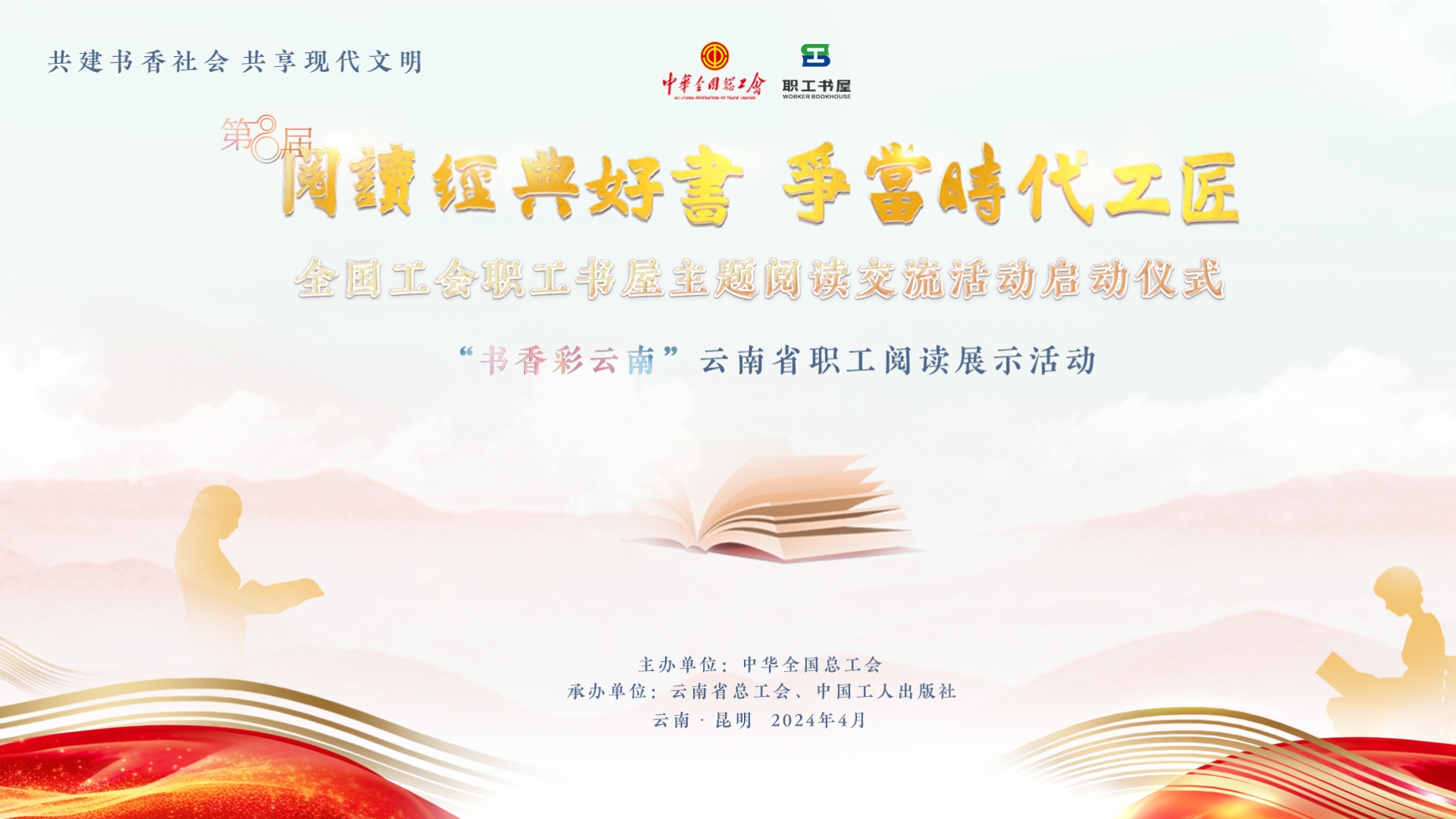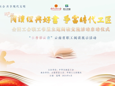 直播回顾丨第八届“阅读经典好书 争当时代工匠”全国工会职工书屋主题阅读交流活动启动仪式暨“书香彩云南”云南省职工阅读展示活动 为深入学习宣传贯彻习近平新时代中国特色社会主义思想和党的二十大精神,贯彻落实党中央、国务院关于开展全民阅读的重要部署,在第29个4.23“世界读书日”到来之际,全国工会宣传思想文化工作领导小组办公室决定在广大职工中开展第八届“阅读经典好书 争当时代工匠”全国工会职工书屋主题阅读交流活动,并于4月23日在云南昆明举行活动启动仪式暨“书香彩云南”云南省职工阅读展示活动。4月23日14:30,中工网首页、微博、视频号同步直播。