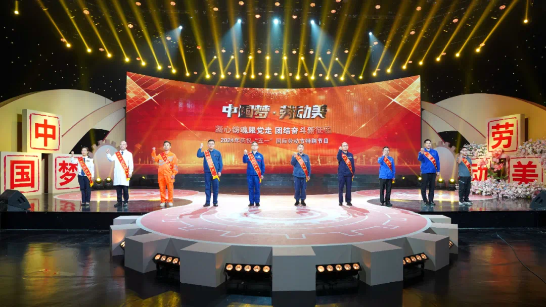 节目设置致敬劳模的环节,邀请10名劳模工匠先进代表登上舞台,聆听他们掷地有声的奋斗宣言,为他们献上鲜花。