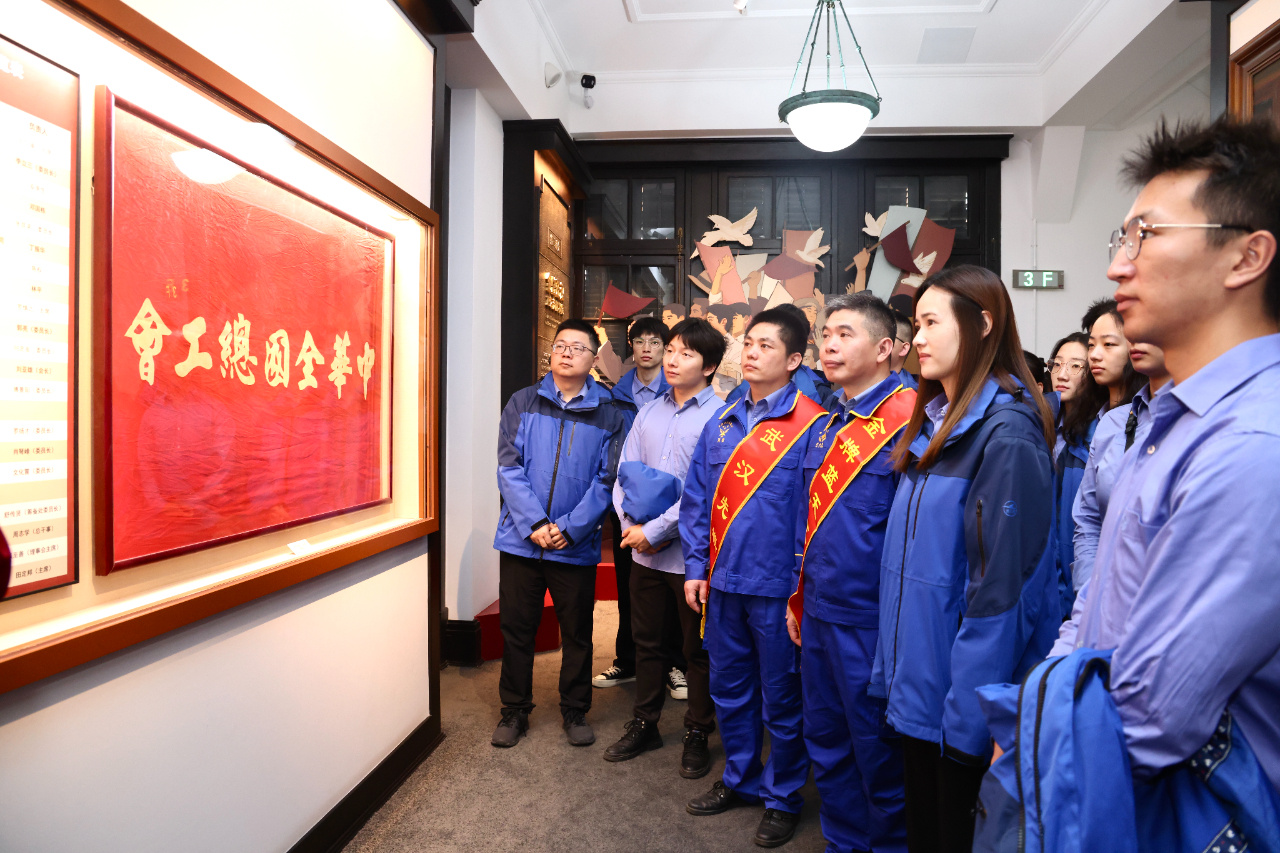 在讲解员的介绍下,一件件藏品、一幅幅历史照片变得鲜活起来,看着按照当年复原的办公场景,工运领袖们一起商讨议事的画面浮现在眼前,那些办公桌椅、笔墨书报都见证着他们意气风发的光辉岁月,全面立体地再现了大革命时期中国共产党领导下波澜壮阔的工人运动历史,给职工们上了一堂生动的思政课。