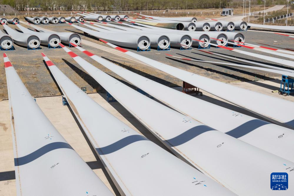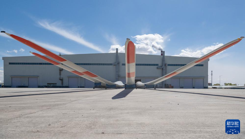 这是4月28日在一重龙申(齐齐哈尔)复合材料有限公司厂区拍摄的风电叶片。新华社记者 谢剑飞 摄