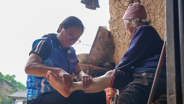 4月22日,张智娟到村民家中进行中医诊疗。(段宏运 摄)