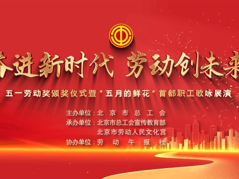 直播回顾丨“奋进新时代 劳动创未来”——五一劳动奖颁奖仪式暨“五月的鲜花”首都职工歌咏展演 为深入学习贯彻习近平新时代中国特色社会主义思想,贯彻落实中国工会十八大精神,喜迎北京市工会十五大召开,北京市总工会主办了“奋进新时代 劳动创未来”——五一劳动奖颁奖仪式暨“五月的鲜花”首都职工歌咏展演,集中展现首都工人阶级风采,营造奋发进取、昂扬向上的职工文化氛围,激励广大职工奋进新征程、建功新时代。4月30日15:30,中工网首页、微博、抖音、视频号同步直播。