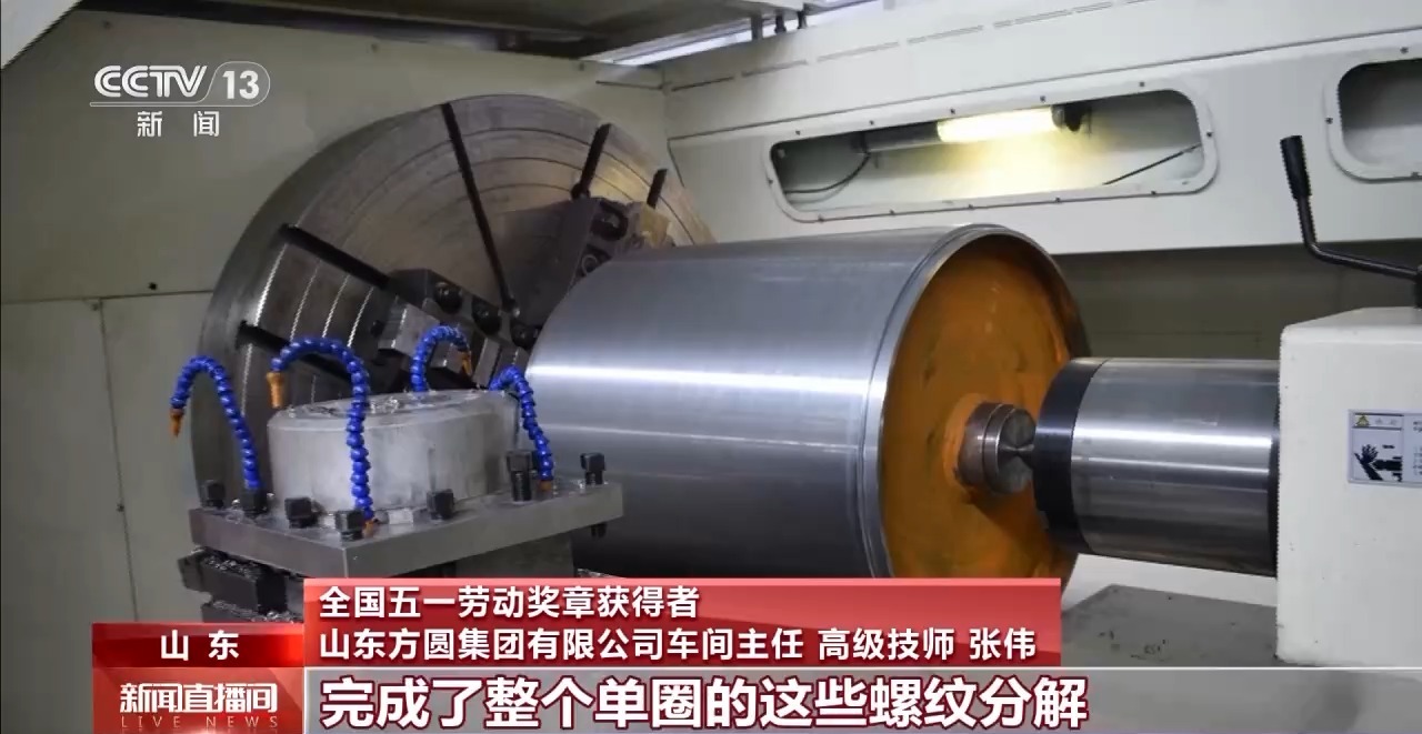 全国五一劳动奖章获得者 山东方圆集团有限公司车间主任 高级技师 张伟:我手的位置大约也就是45度的位置,给我带来的灵感,让我把整个圆分解成4段,完成了整个单圈螺纹的分解,无限次的循环就可以完成整个卷筒的加工。