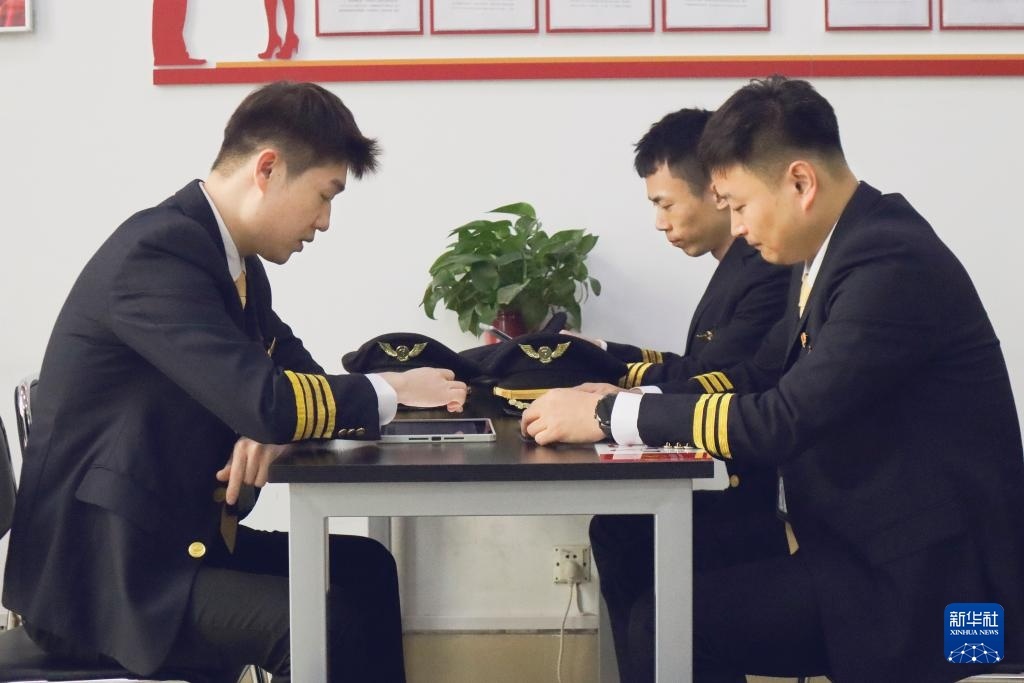 长安航空9H8409飞行机组进行航前准备(资料照片)。新华社发